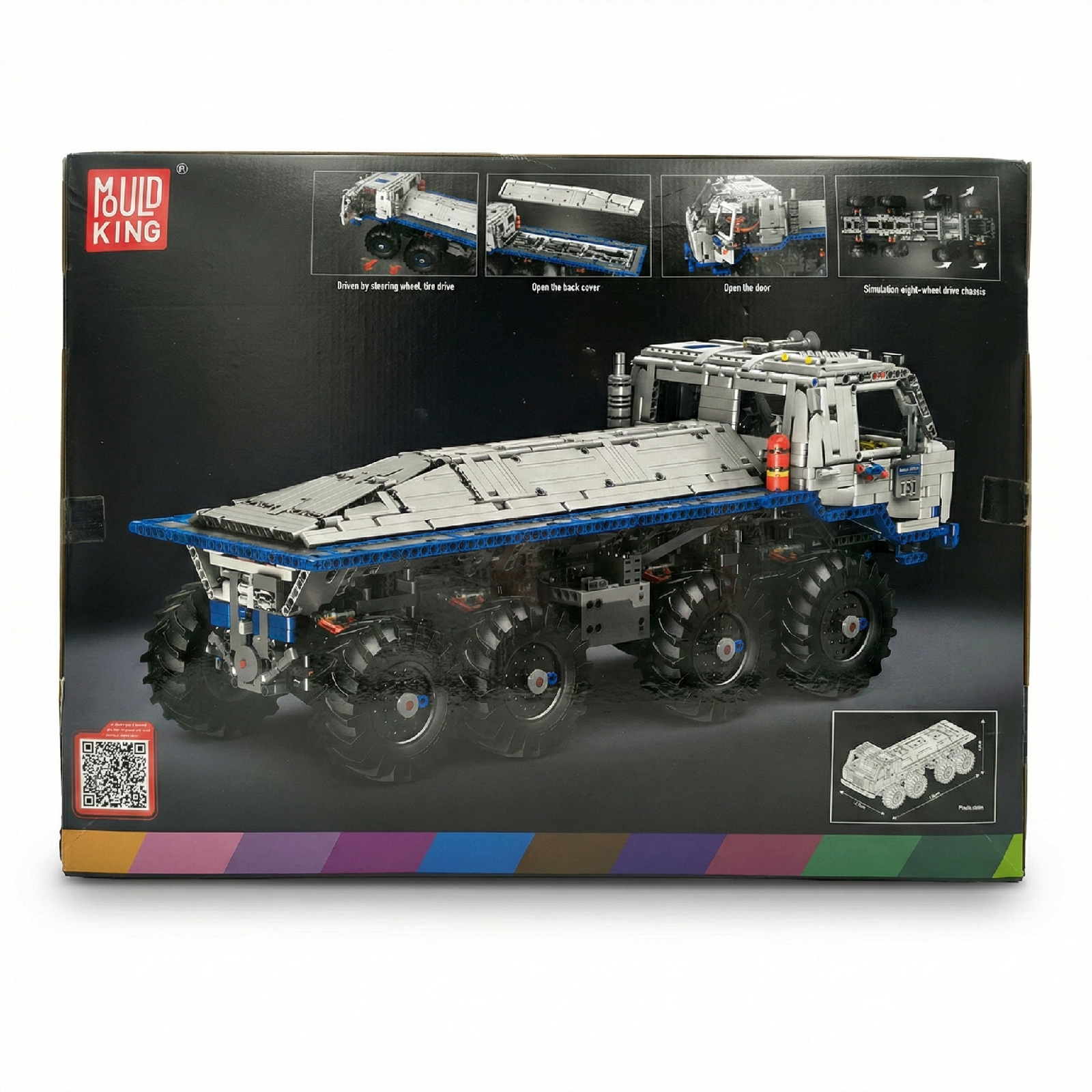 Erfahre ein außergewöhnliches Spielerlebnis mit dem Mould King Tatra T813 Truck. Bewundere das funktionale Design mit doppelten Türen und Lenkrad-Verbindung, realistischen Funktionen wie der öffnenden Rückwand und den beweglichen Scheibenwischern sowie seiner Fähigkeit zur 360-Grad-Rotation auf der Stelle.